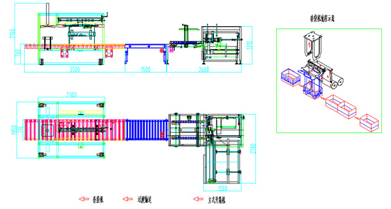 該系統包含了瓦楞紙板自動開箱、成型、折邊、底部膠封或膠粘、輸送、自動制袋、套袋、整袋、翻邊一體化功能,其自動制袋套袋同樣可實現與包裝桶的配合使用。
